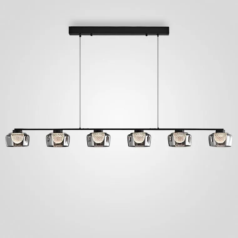 Представляем вам эксклюзивную серию светодиодных люстр, которые оснащены впечатляющими прозрачными фактурными рассеивателями, заключенными внутри элегантных дымчатых плафонов, в виде купола, установленных на реечном каркасе.