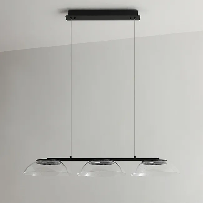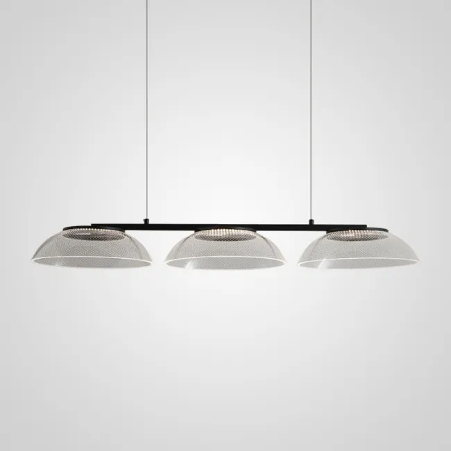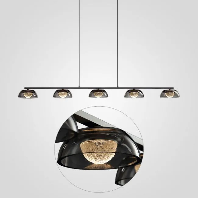 Представляем вам эксклюзивную серию светодиодных люстр, которые оснащены впечатляющими прозрачными фактурными рассеивателями, заключенными внутри элегантных дымчатых плафонов, в виде купола, установленных на реечном каркасе.