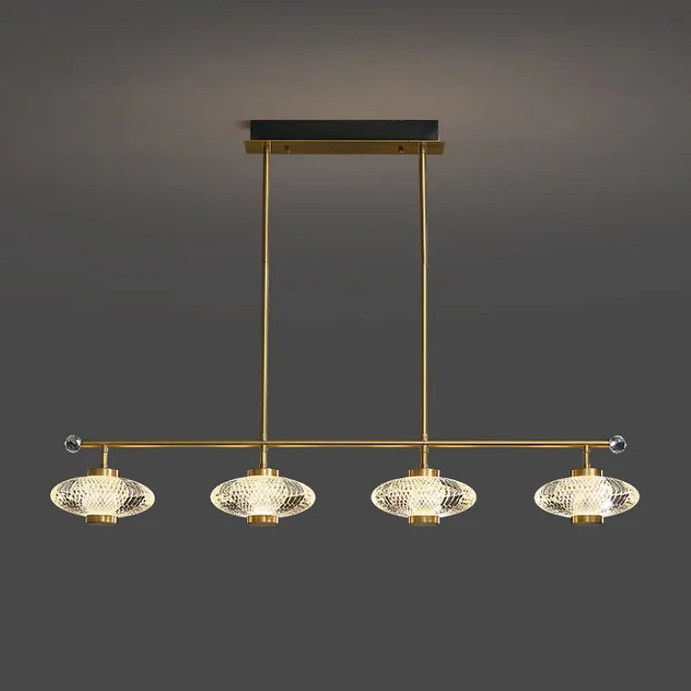 NICOL LONG мгновенно преобразит ваше пространство и добавит роскоши в любой интерьер. На прочной латунной стойке гармонично расположилась поперечная штанга, на которой закреплены четыре рельефных подвесных плафона. Эти эллиптические плафоны вызывают ассоциации с драгоценными камнями, создавая атмосферу утонченности и элегантности. Верх и низ каждого плафона обрамлен латунной вставкой, что добавляет ещё больше изящества и привлекательности.