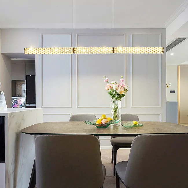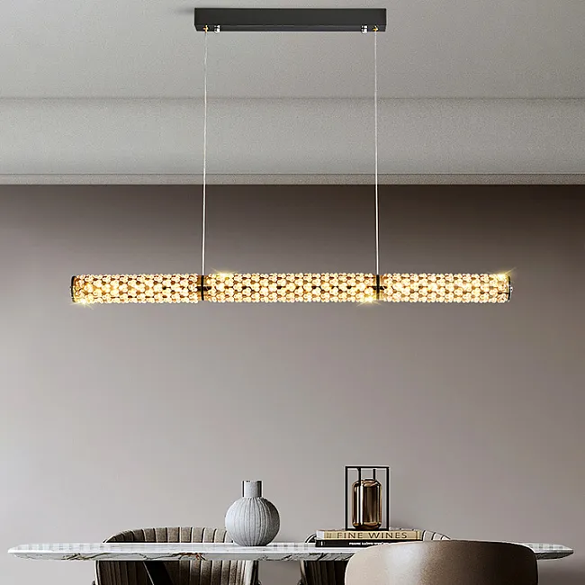 На концах штанги закреплены декоративные хрустальные гранёные шарики, словно волшебные небесные тела, придавая композиции законченный и роскошный вид. Этот светильник станет идеальным решением для вашей столовой зоны или кабинета. Мягкий и при этом насыщенный свет создаст атмосферу уюта и благополучия, а стильный дизайн подчеркнёт вашу безупречную эстетику и вкус. Каждое мгновение под этим светом будет наполнено теплотой и вдохновением, даря вам и вашим гостям незабываемые впечатления.