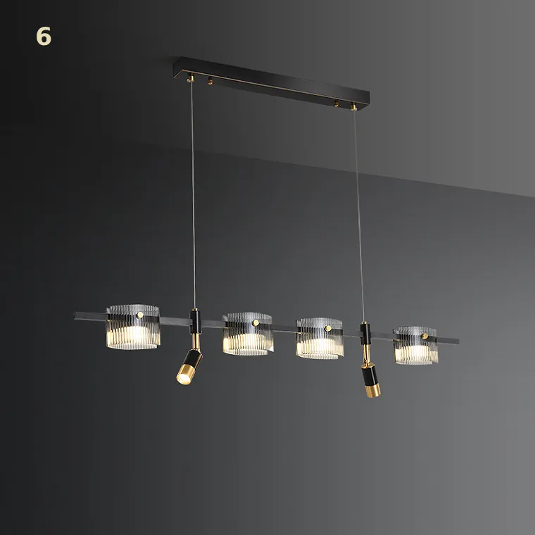 Люстра просто супер, в ней всё идеально. Высота для моего потолка в кухне-гостиной подошла оптимально. Плафоны интересной формы, из ребристого стекла. Рейка металлическая, мне больше в чёрном цвете понравилась. И вот эти дополнительные споты тут очень в тему. Их можно крутить как хочешь, направлять свет в нужные места. Ещё и димер есть, яркость можно менять.