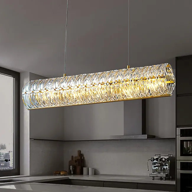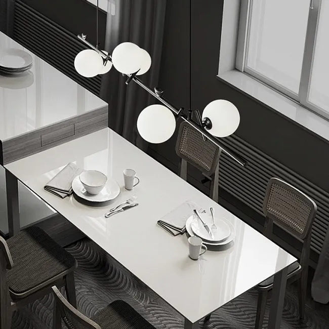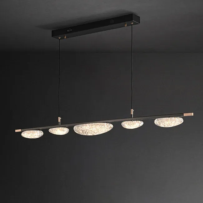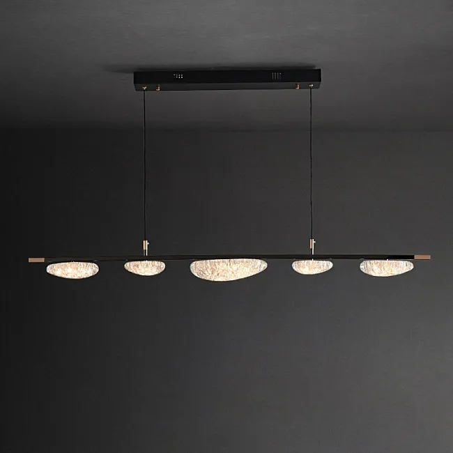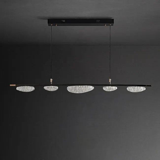 Люстра для столовой зоны с декором в виде хрустальных цветов и подвесок на металлическом каркасе