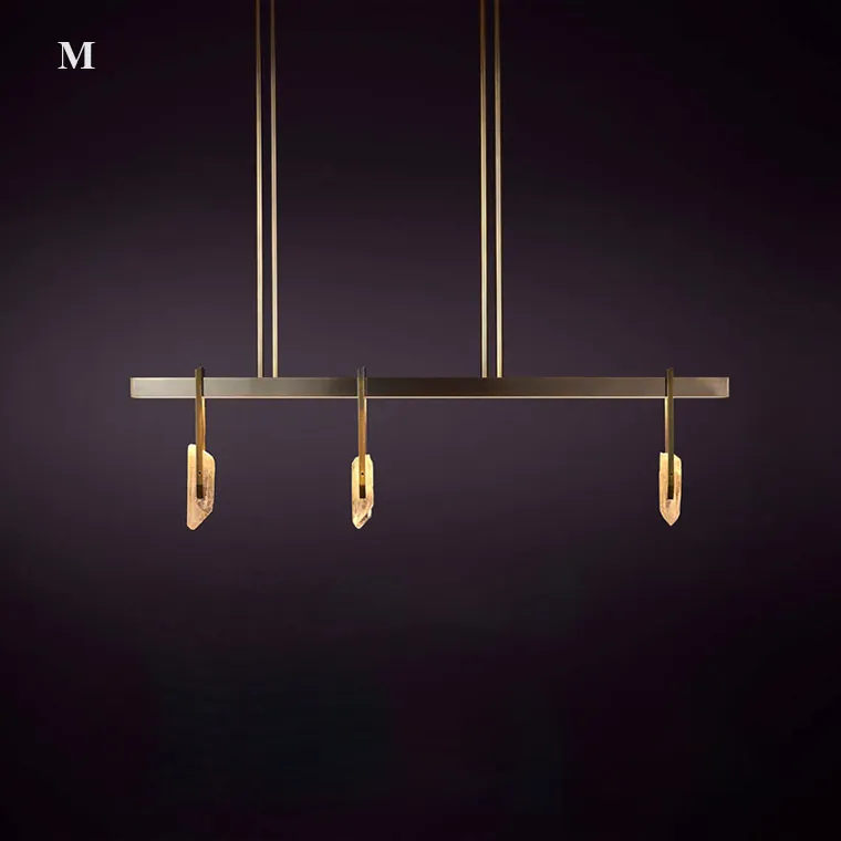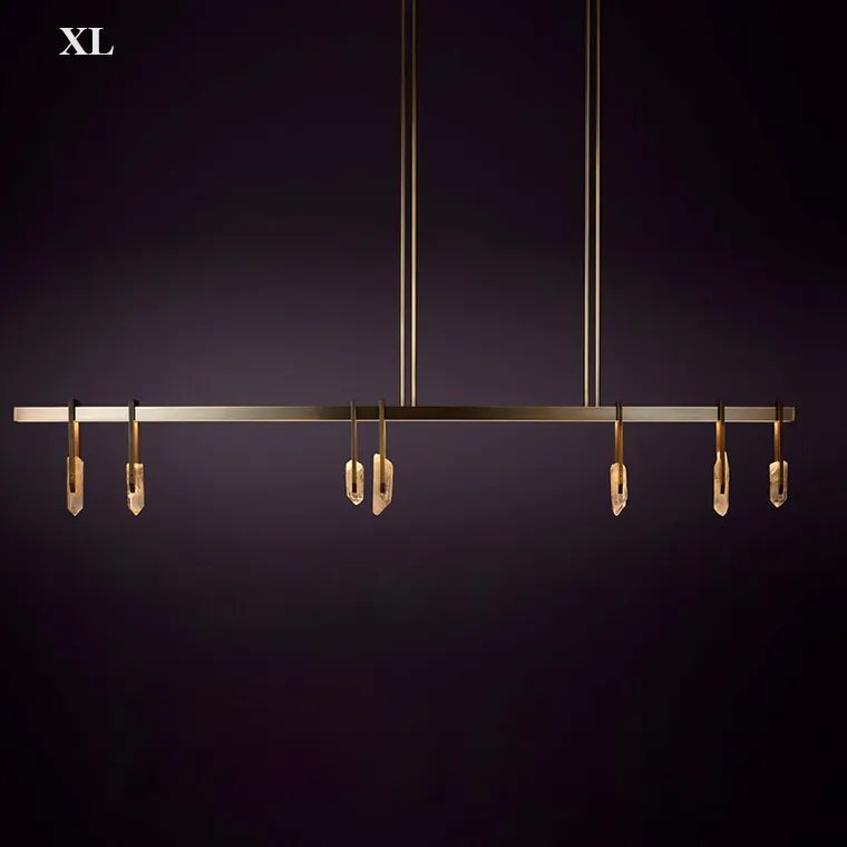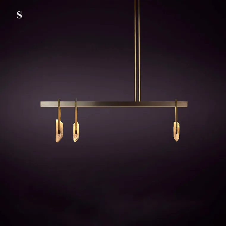 Реечный линейный светильник в минималистичном стиле со вставками из неограненных кристаллов кварца