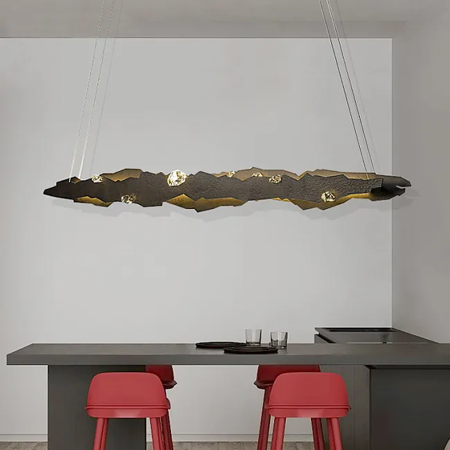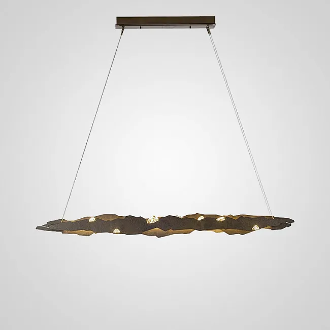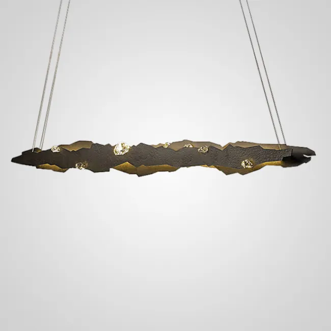 Реечный линейный светильник в минималистичном стиле со вставками из неограненных кристаллов кварца
