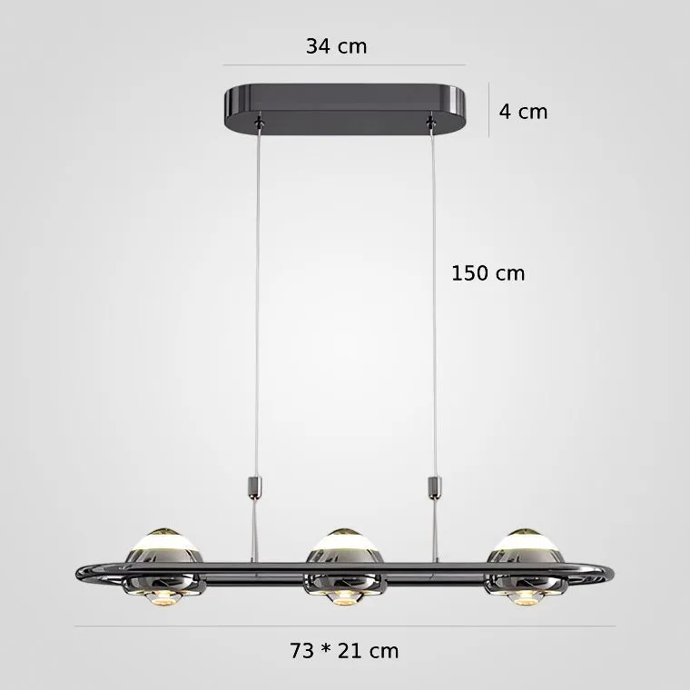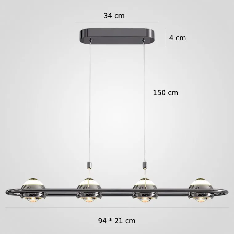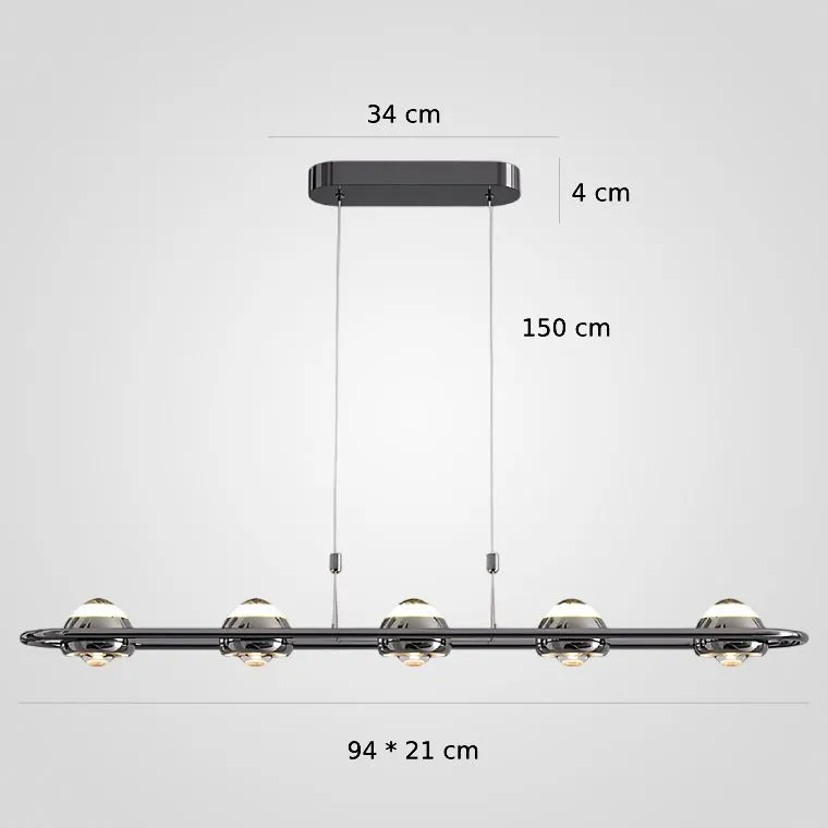 Серия реечных люстр с полусферическими плафонами с линзированным источником света на закольцованном корпусе