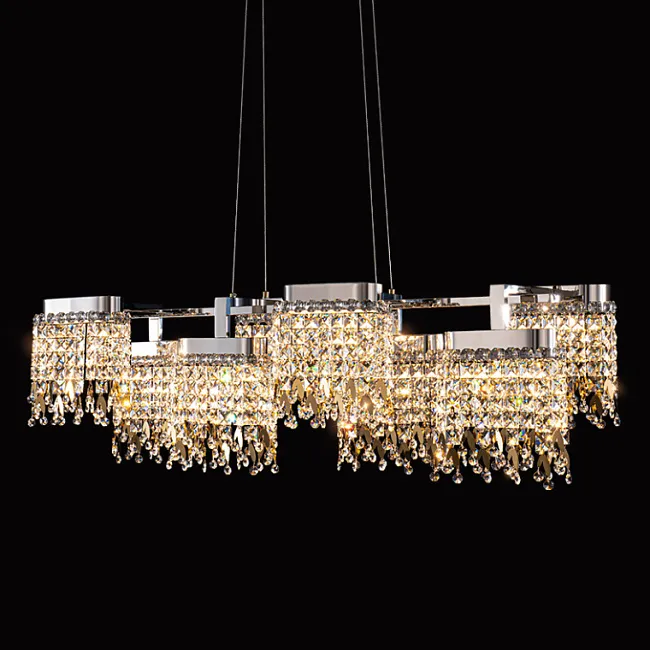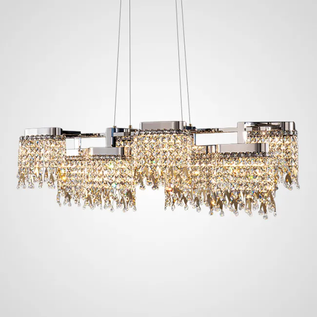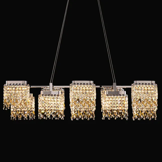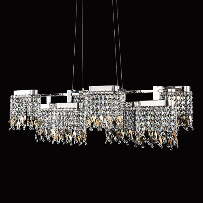 Серия реечных люстр с полусферическими плафонами с линзированным источником света на закольцованном корпусе