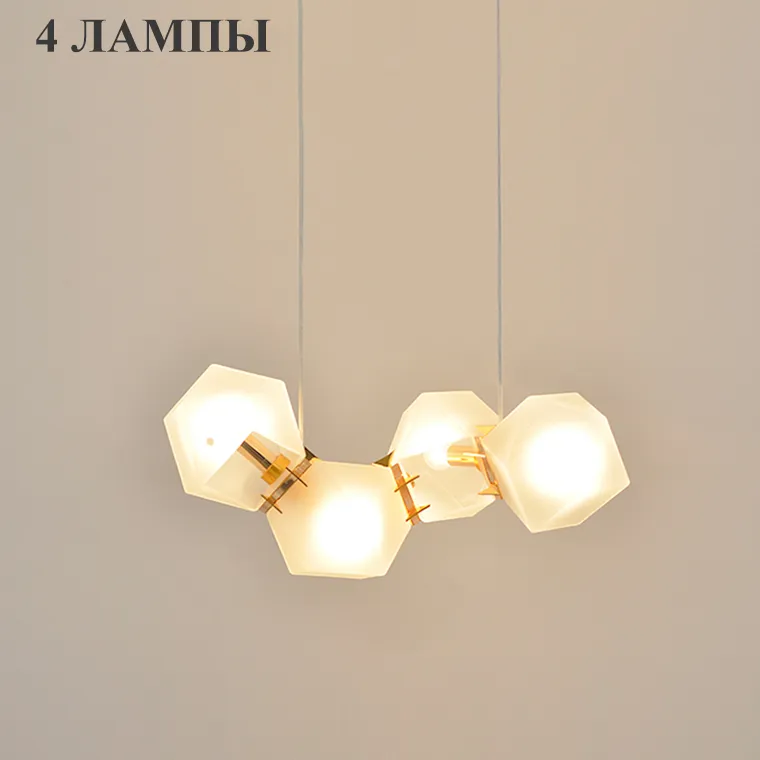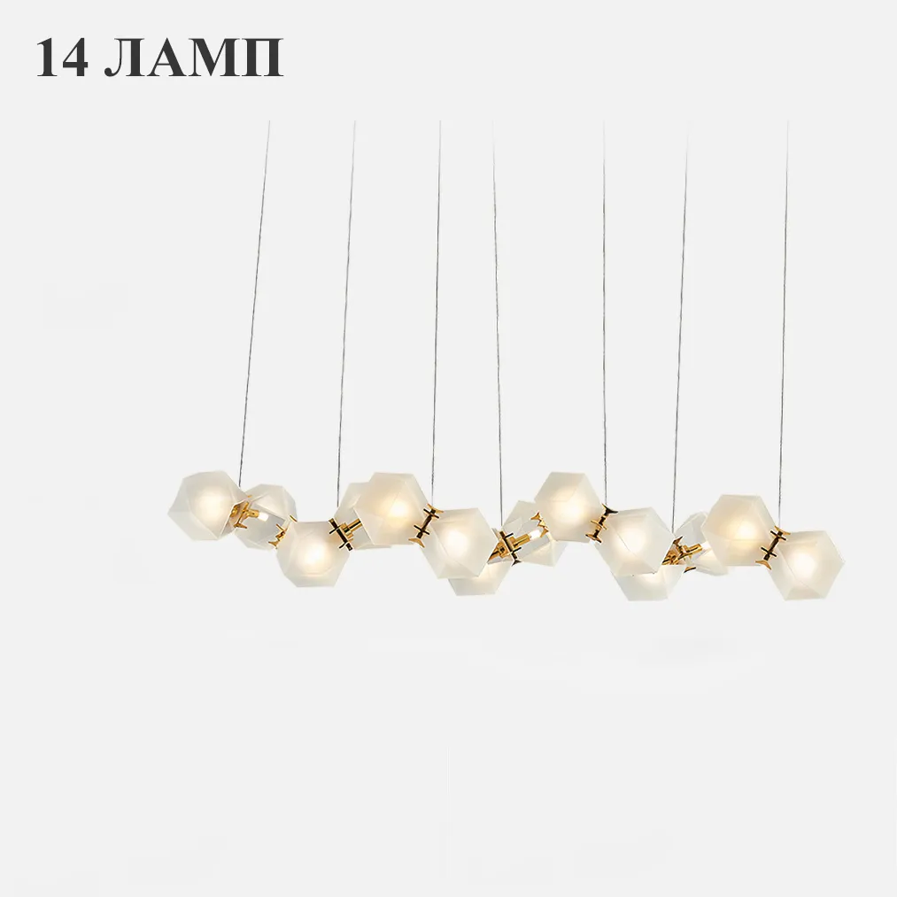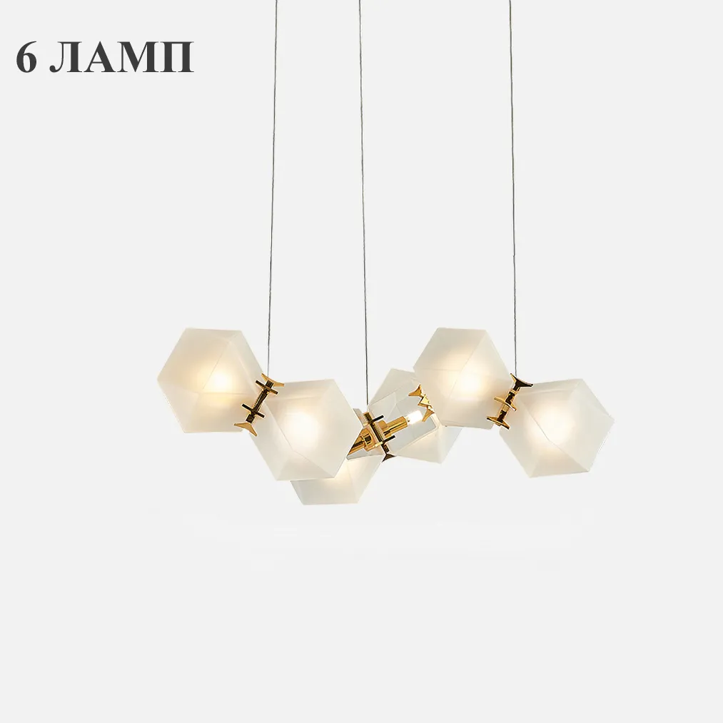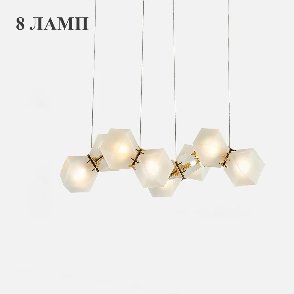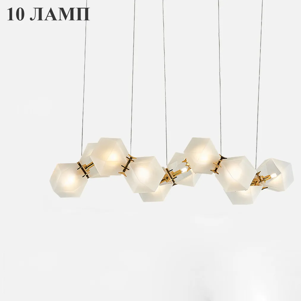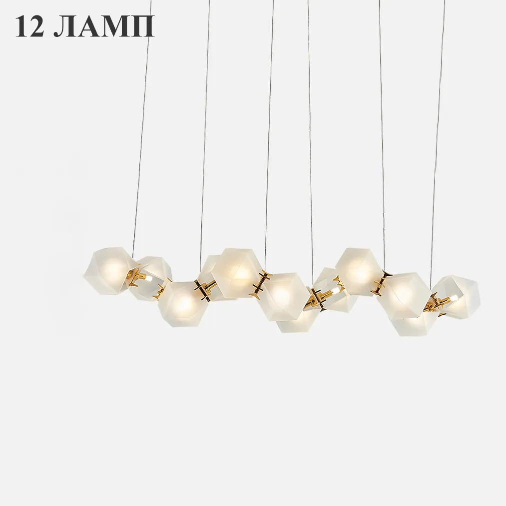 Реечный светильник в виде стеклянных многогранников из матового стекла