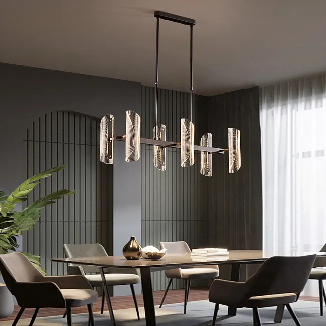 Стильно, элегантно, даже брутально что ли даже немного. Для холостяцкого загородного коттеджа вариант очень даже. Я хотел именно реечную люстру, нравятся мне такие модели. Тут плафоны внешне напоминают наполненные стаканы, весьма символично и необычно. Свет нравится мне по яркости и по цвету, мягкий, не холодный.