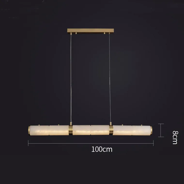 Стильная люстра, смотрится со вкусом. У меня каменные столешницы на кухне, и вот этот мраморный плафон с ними круто сочетается. Он в форме трубки из нескольких частей, между ними латунные перемычки. Через мрамор свет светит не очень ярко, мне нравится. Для кухни вариант классный.