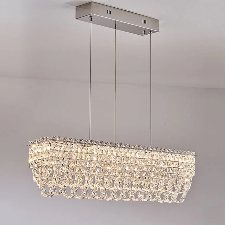 Насыщенные квадратные хрустальные плашки, размещенные на каркасе из хрома, создают удивительный эффект преломления света и отражают волны радости в каждом уголке помещения. Эти гобелены из света ярко сверкают, словно созвездия мерцающих звезд.
