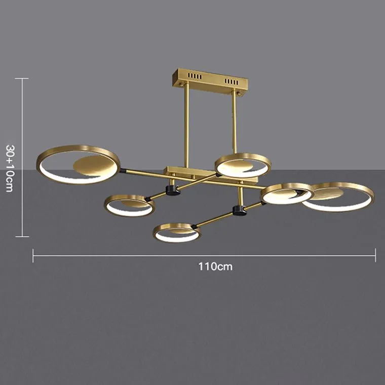 Люстра со светодиодными плафонами кольцевой формы на поворотных штангах
