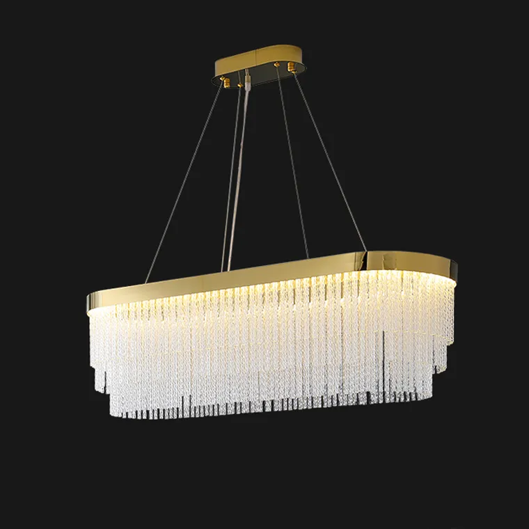 Серия реечных светодиодных светильников с каскадным абажуром из подвесок в виде рельефных стеклянных стержней