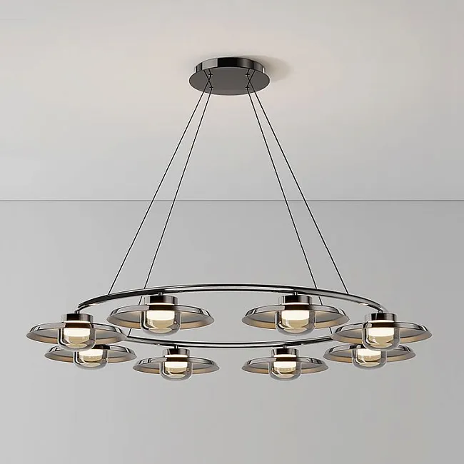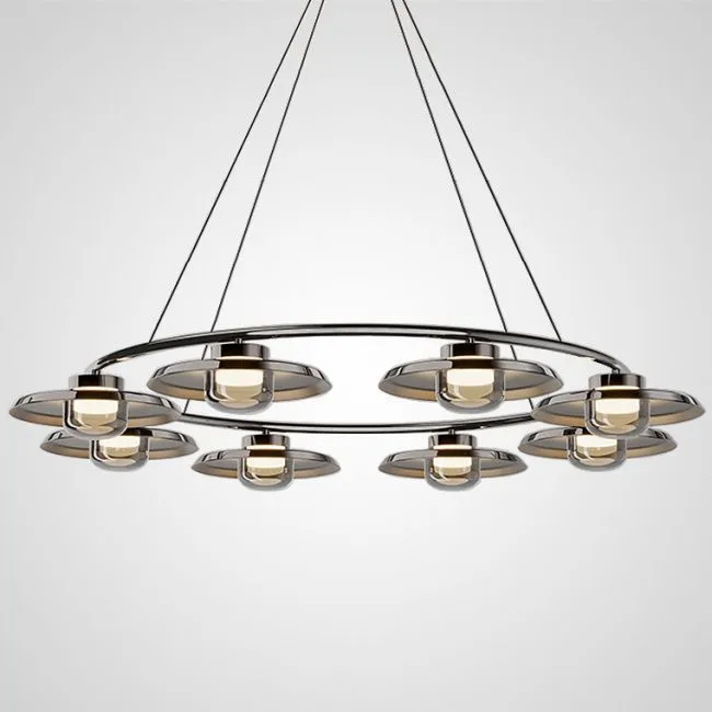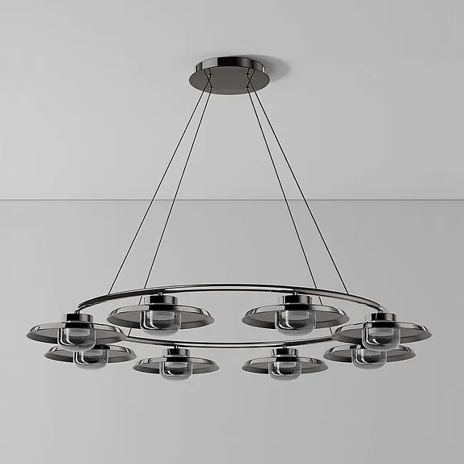Первый взгляд на эти светильники завораживает: дисковидные металлические плафоны изящно сочетаются с полусферическими стеклянными рассеивателями, создавая потрясающую гармонию форм и материалов. Жемчужно черный корпус с дымчато серыми плафонами подарит вашему пространству оттенок таинственности и глубины, словно ночное небо, прикрытое дымкой. С другой стороны, хромированный корпус с молочно белыми плафонами добавит нотки современной свежести и изысканности, как утренний свет, пронизывающий облака.