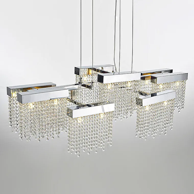 Каскадная люстра с подвесками из хрустальных бусин на многоступенчатом каркасе из стали