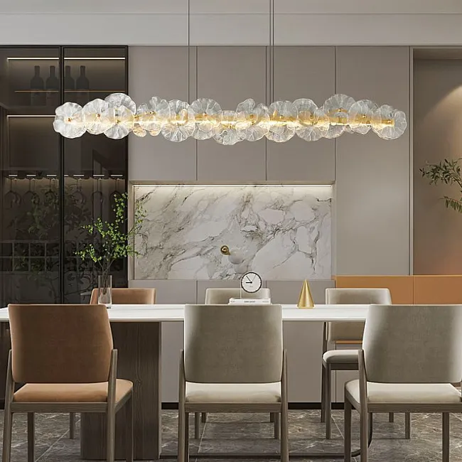 Реечный светильник с абажуром из матового и прозрачного стекла с природными мотивами