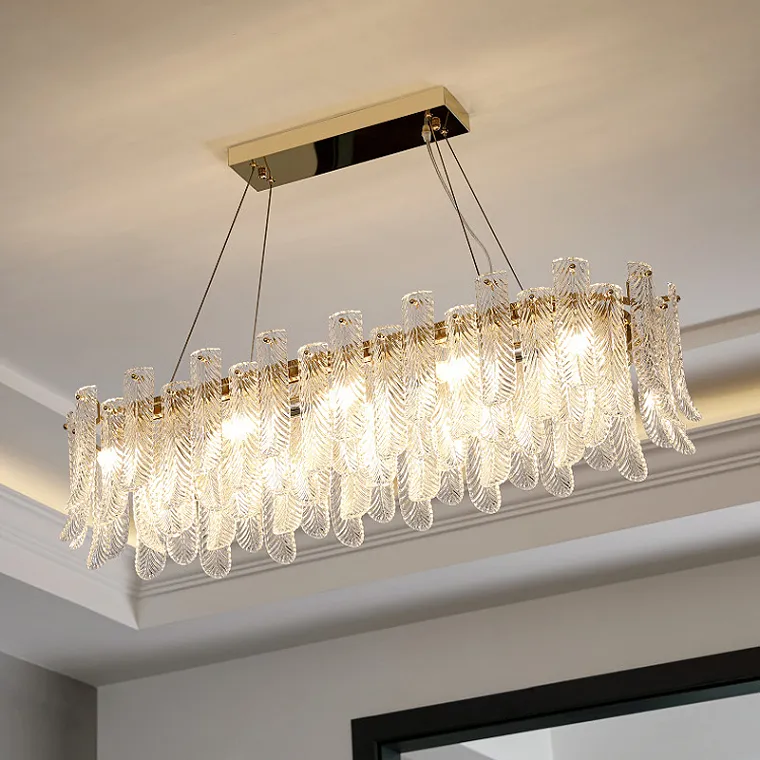 Серия реечных светильников с прозрачными рассеивателями в форме перьев из рельефного стекла