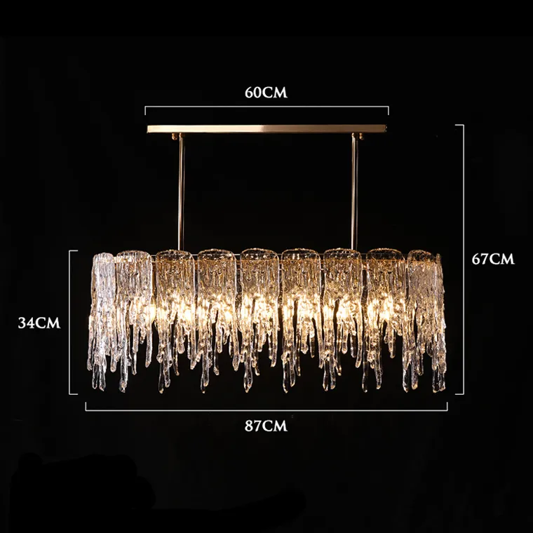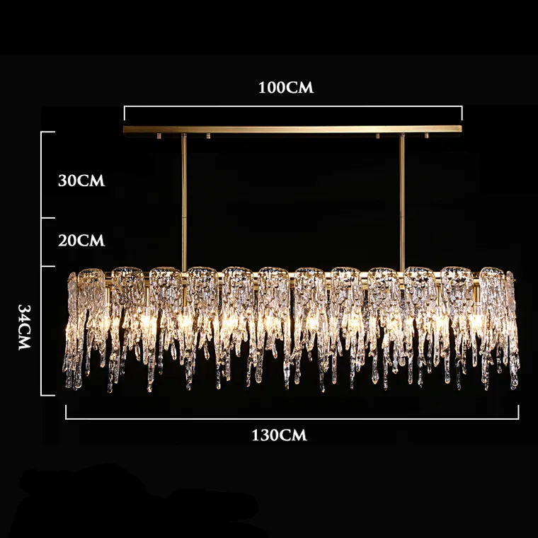 Серия реечных светильников с абажуром из стеклянных подвесок каплевидной формы