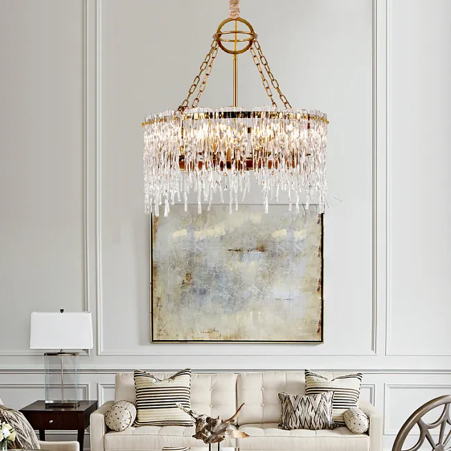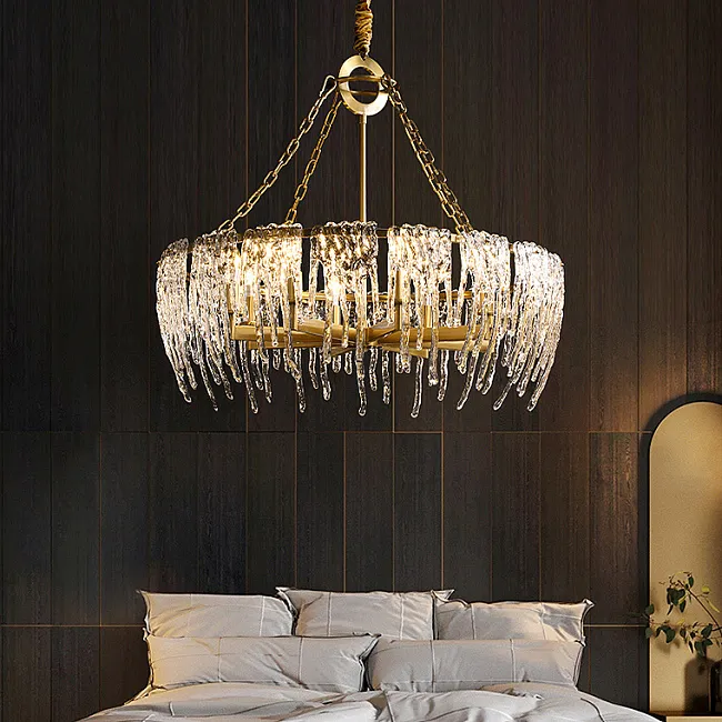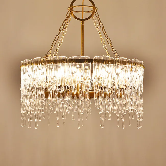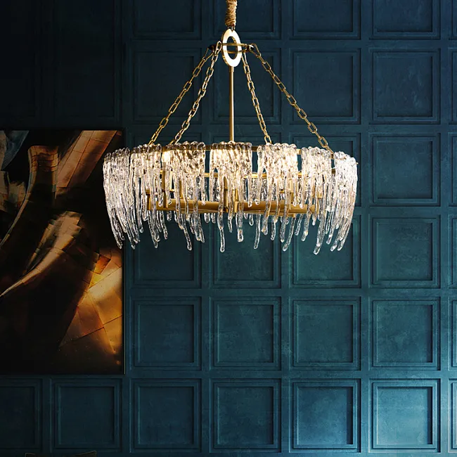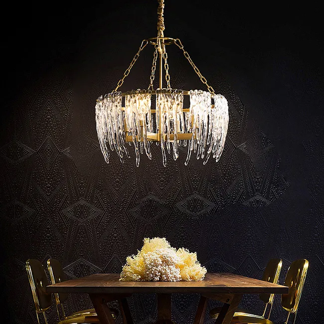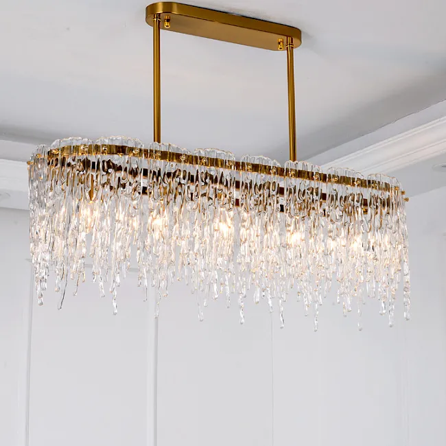 Серия реечных светильников с абажуром из стеклянных подвесок каплевидной формы