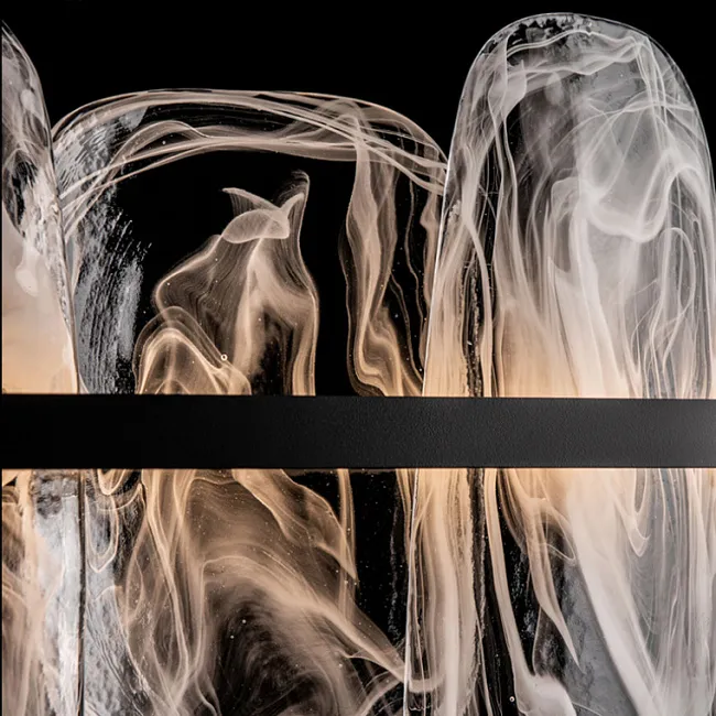 Реечный светодиодный светильник со стеклянными рассеивателями с эффектом «белый дым». Светильники из серии кольцевых светодиодных светильников со стеклянными рассеивателями с эффектом "белый дым" – это прекрасное решение для создания особой атмосферы в вашем доме. Сочетание латунного кольца и украшенных стеклянными пластинами разного размера создает эффект "белого дыма", который окутывает пространство вокруг светильника. Хотите придать вашему дому неповторимую атмосферу уюта и элегантности.