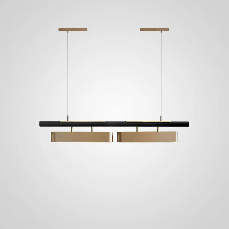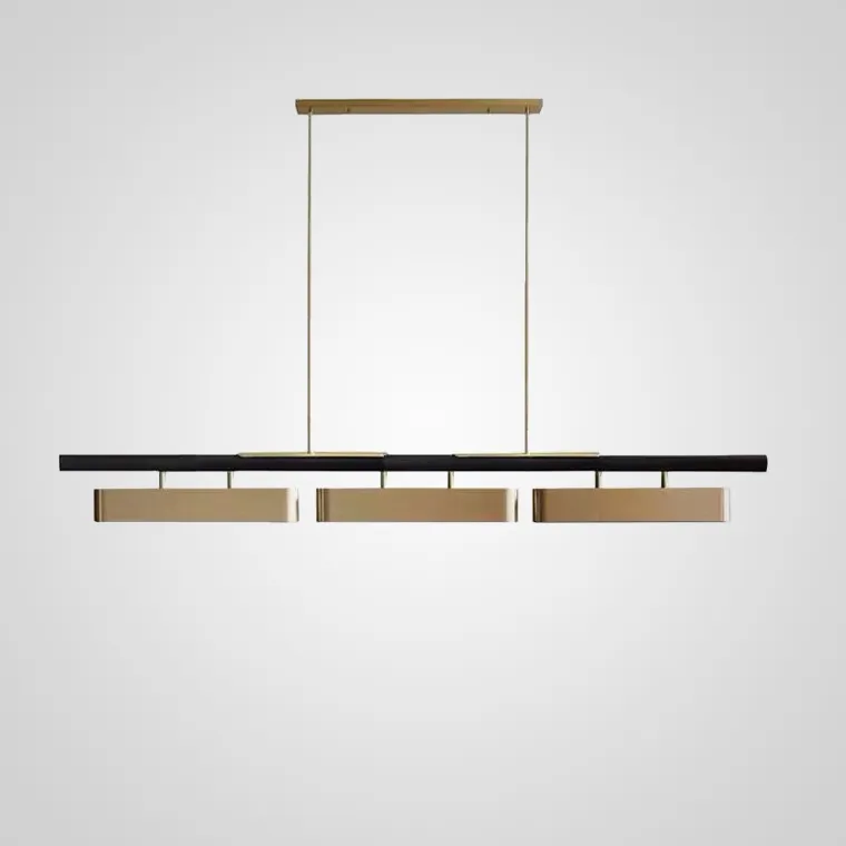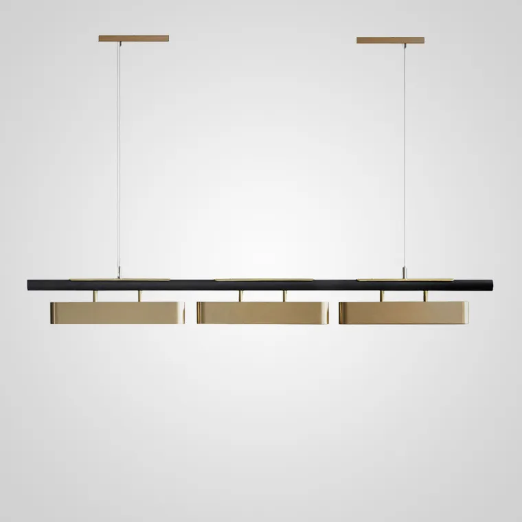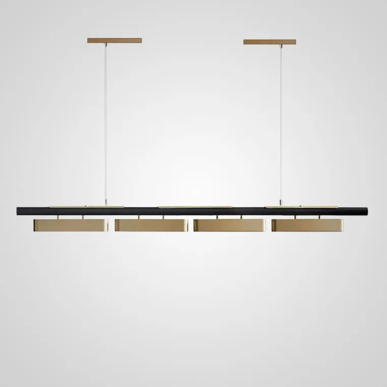 Сочетание черного и латуни – французский люкс в вашем доме. Обтекаемые формы перфорированных плафонов дополняют эстетику модели. Цепочка из латунных ламп по черной направляющей выглядит отдельной деталью интерьера, делая его трехмерным. Локальное освещение реечного светильника SVEA над обеденной зоной, барной стойкой, местом для работы сделает ваше пребывание комфортным и удобным. Дизайнерская люстра идеально впишется в самые разнообразные стили интерьера.