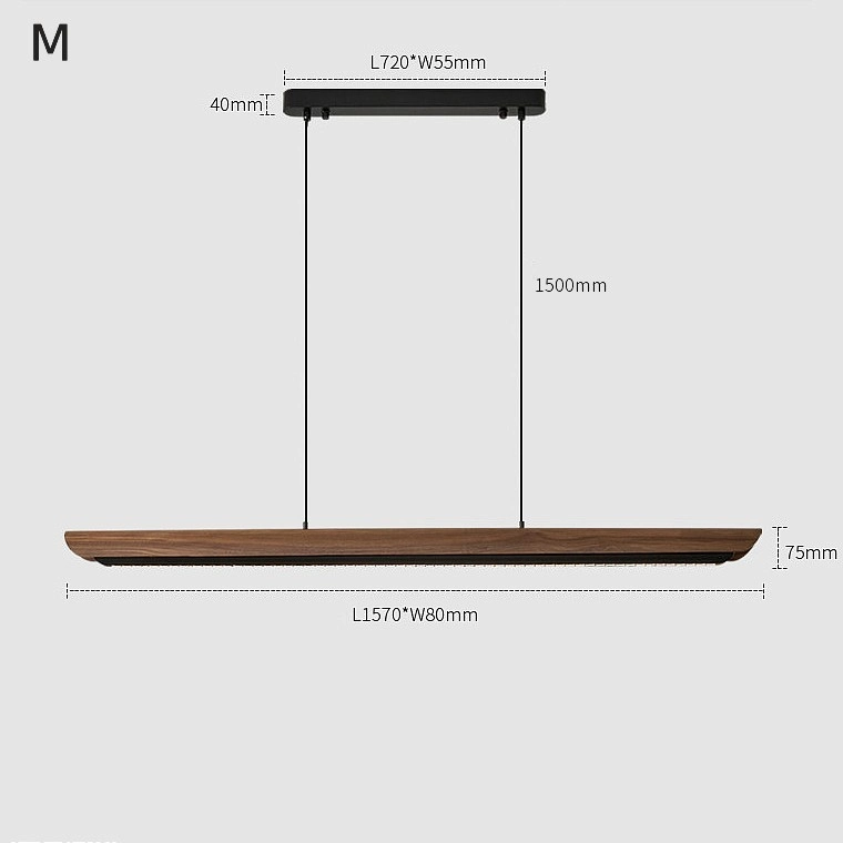 Реечная люстра с деревянным изогнутым плафоном и светящимся LED-элементом
