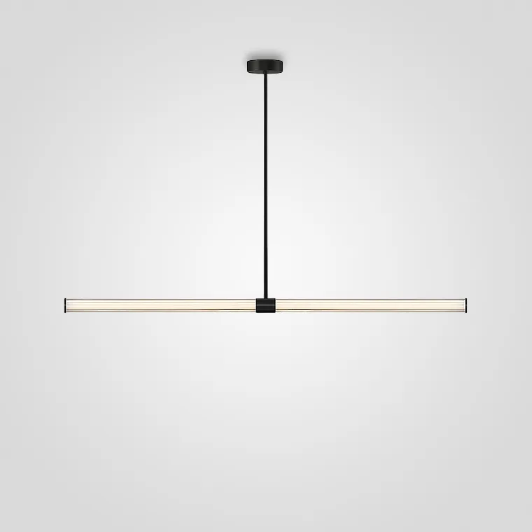 Просто, ничего лишнего, но смотрится круто на самом деле. Для мужской квартиры самое оно, но девушке моей эта реечная люстра тоже понравилась. У меня квартира в новом доме, потолки высокие, поэтому светильники на подвесах хорошо подходят. Я выбрал среднюю по длине модель, мне для гостиной хватило. Есть и больше, и меньше. Подвес прочный, из покрашенного в чёрный металла. Лампочка в стекле. Оно ребристое, и свет за счёт этого интересный. Не напрягает, не больничный холодный. Всё очень качественно.