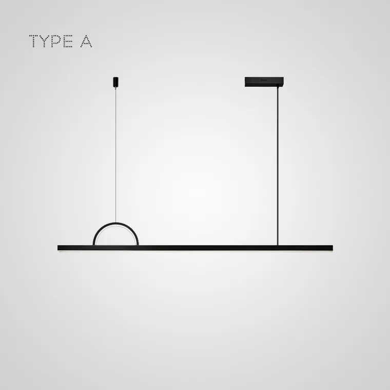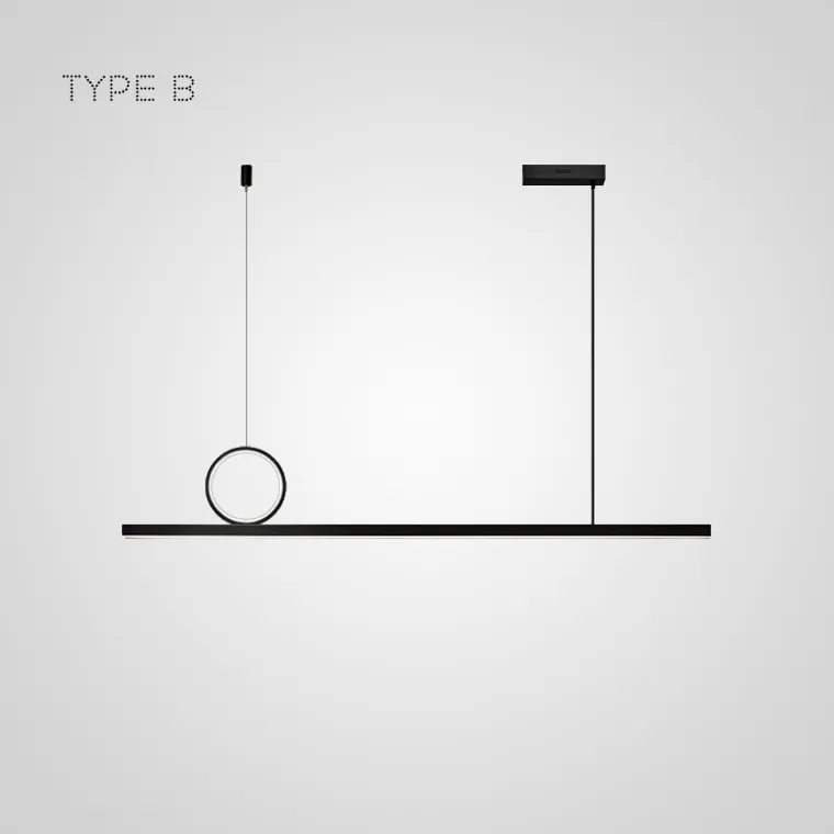 Серия реечных светильников с LED-подсветкой по низу черного прямоугольного корпуса с декором в форме кольца и полукольца