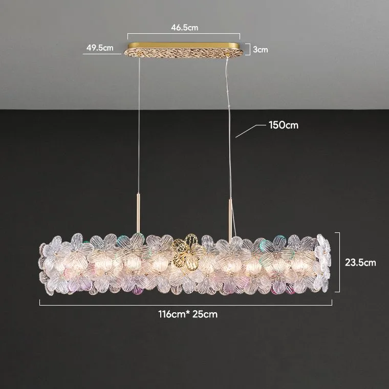 Цветочный декор этой люстры не просто украшение, а настоящий художественный акцент вашего интерьера. Окрашенные стеклянные цветы дарят комнате игривость и жизнерадостность, а прозрачные оттенки добавляют нотку элегантности и изысканности. Благодаря гармоничной комбинации цветов создается атмосфера радости и уюта.