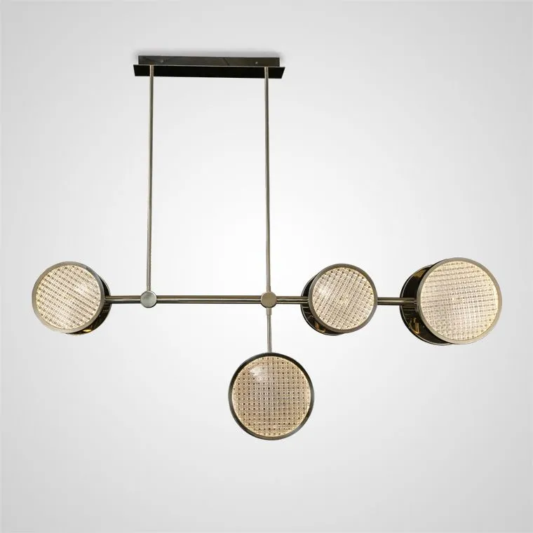 Представляем вам светодиодный реечный светильник на стойках от бренда PULSSAR - идеальное решение для вашей гостиной или столовой зоны! В его основе лежат дисковидные плафоны разного размера, изготовленные из фактурного стекла ручной работы, которые обеспечивают мягкое и равномерное освещение пространства.