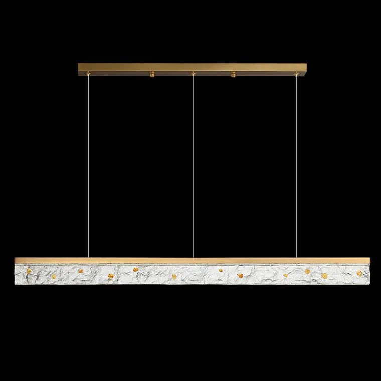 Серия светодиодных реечных светильников с латунным корпусом и прозрачным фактурным рассеивателем, имитирующим прозрачный природный камень с золотистыми вкраплениями.