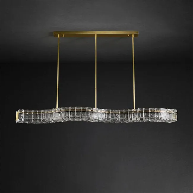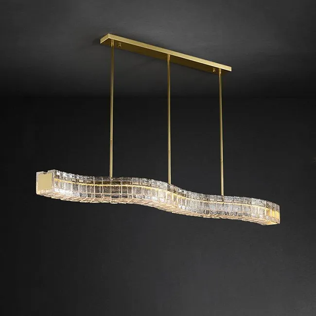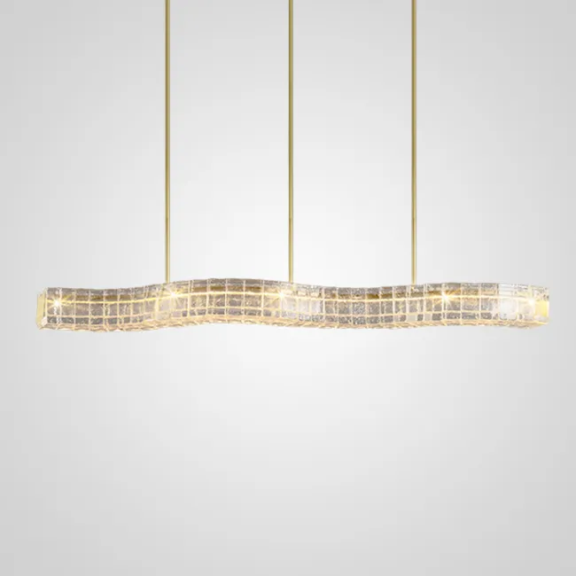 Серия светодиодных реечных светильников с латунным корпусом и прозрачным фактурным рассеивателем, имитирующим прозрачный природный камень с золотистыми вкраплениями.
