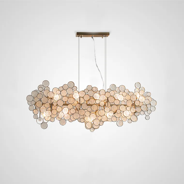 Серия реечных светильников с абажуром из рельефных стеклянных рассеивателей дисковидной формы