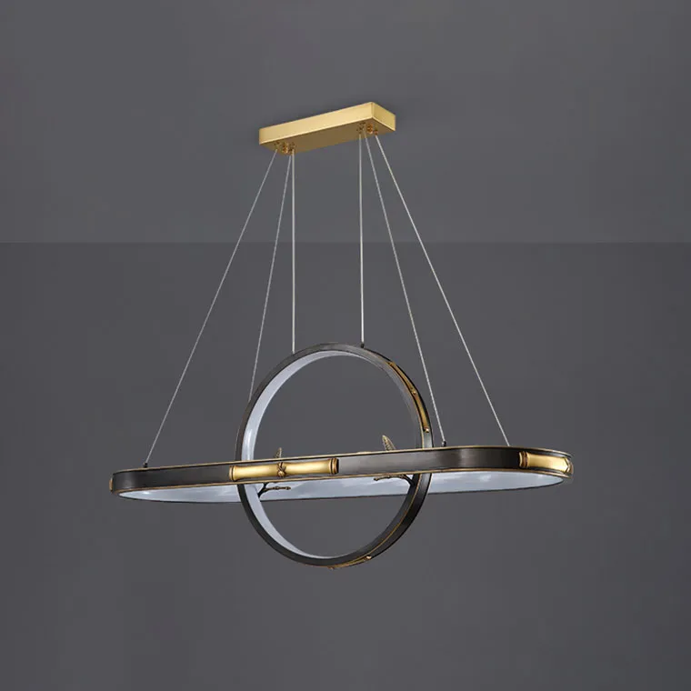 Стилизованный светильник в виде эллипса и внутреннего кольца с латунными декоративными вставками. Для создания этнического настроение в пространстве.