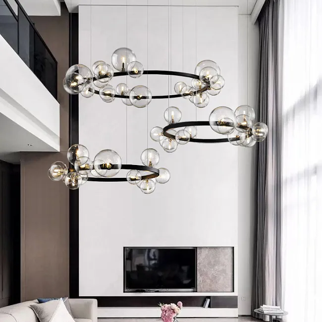 Реечный барный светильник с плафонами шарами на светодиодной рейке