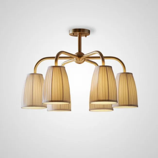 Люстра с ретро-лампами может имитировать старинные подсвечники или роскошные средневековые канделябры. Другой вариант – текстильный абажур из дорогой ткани с оборками, драпировками или в лаконичном исполнении без лишних элементов, с каркасом, обтянутом тканым материалом. Также светильники, выдержанные в традициях средневековья или других эпох, могут иметь кованые элементы – кольцевые массивные основания, рожки, арматуру. Часто встречается элегантный декор в виде рюш, кистей, сверкающих подвесок, плетёных деталей, макраме.