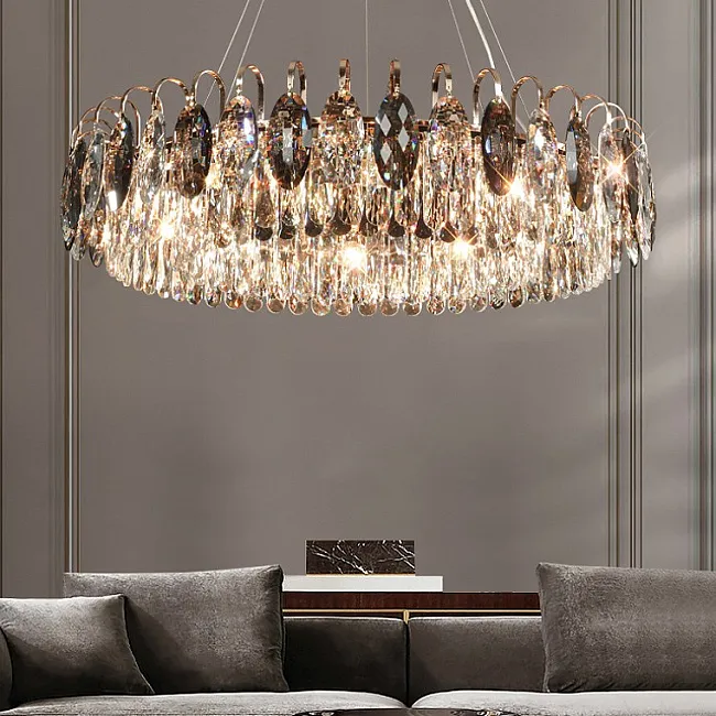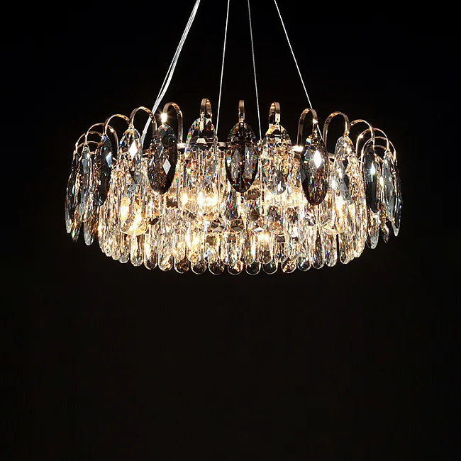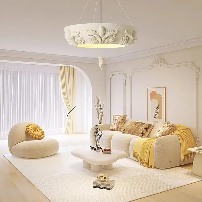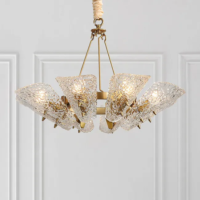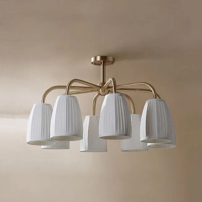 В наличии люстры в ретро-стиле с лаконичным исполнением, например, с текстильным абажуром или плафонами простых геометрических форм, а также модели с более интересным дизайном – с каркасом, обтянутым драпированной тканью или плетением макраме, с имитированными огранёнными мерцающими камнями, с романтичными кисточками или струящимися многочисленными бисерными подвесками.