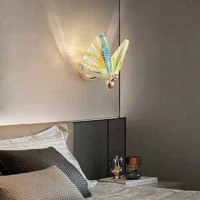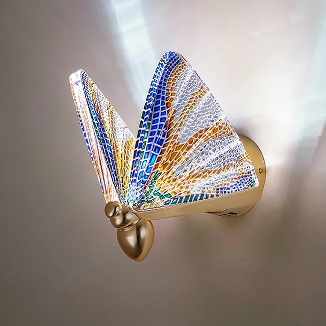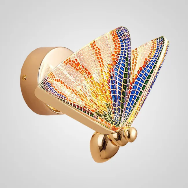 Оригинальная настенная лампа, выполненная в виде золотой бабочки с ажурными крыльями