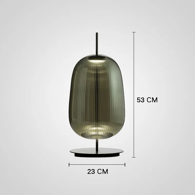 Серия настольных светодиодных ламп с рельефными плафонами из выдувного стекла разных цветов