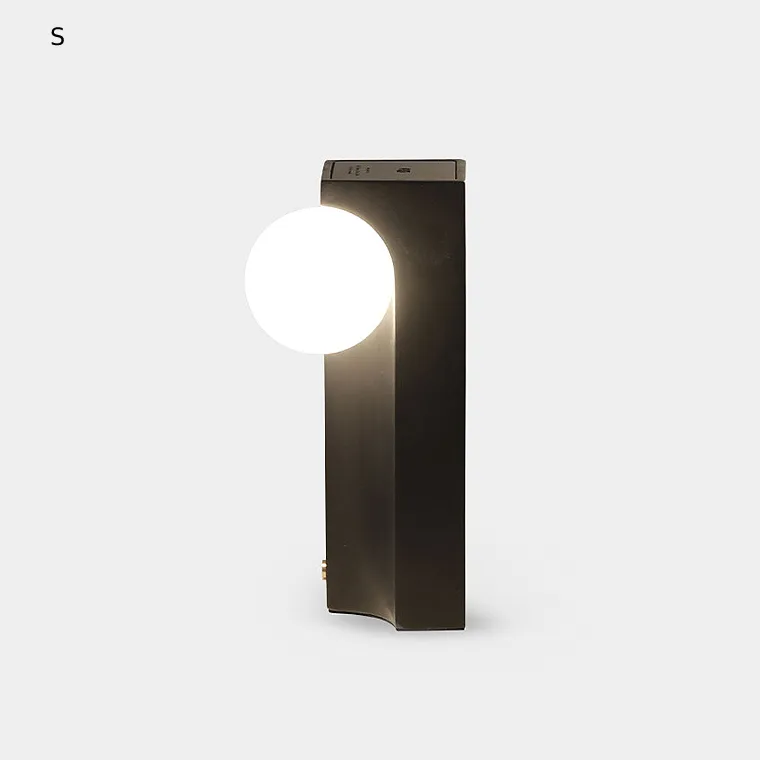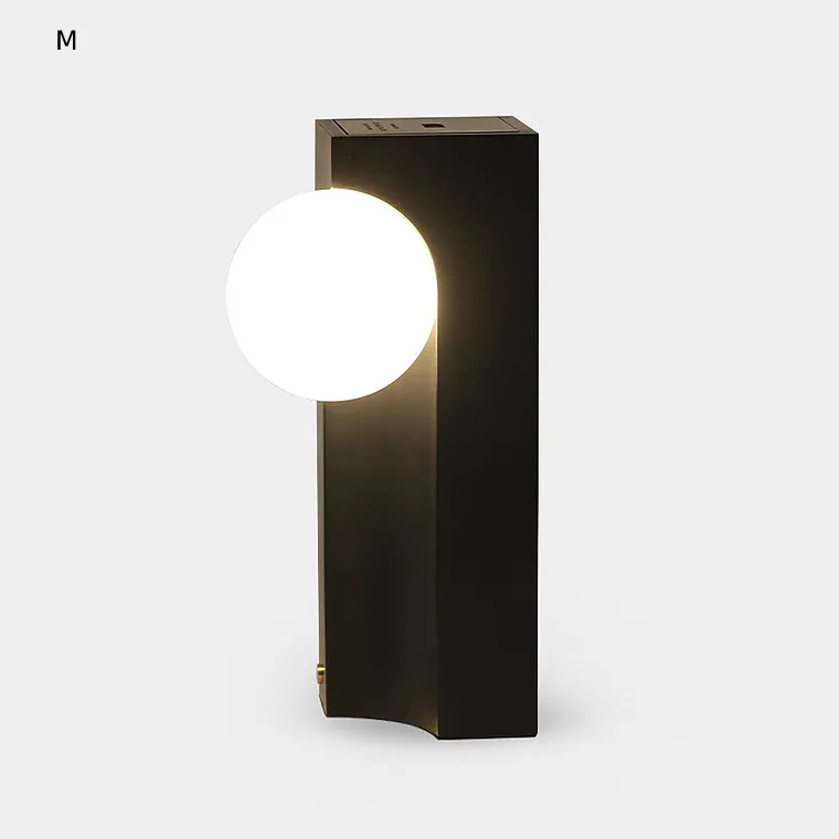 Серия настольных ламп со стеклянным шарообразным плафоном на прямоугольном основании из цемента