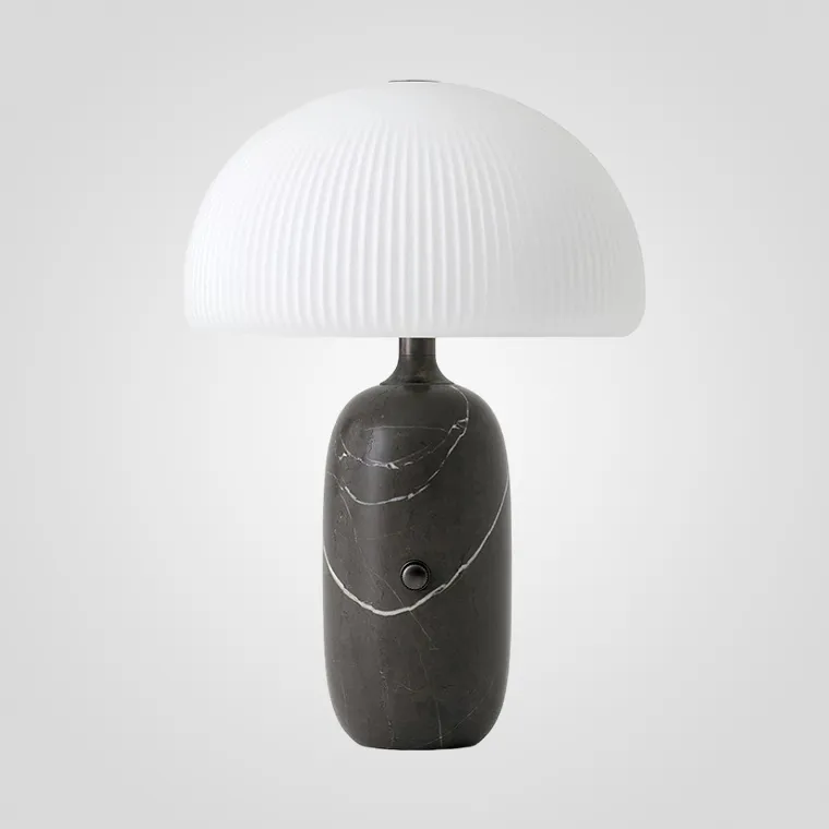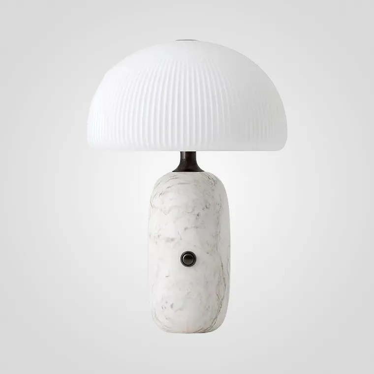 Настольная лампа с белым плафоном из рельефного стекла и каменным основанием