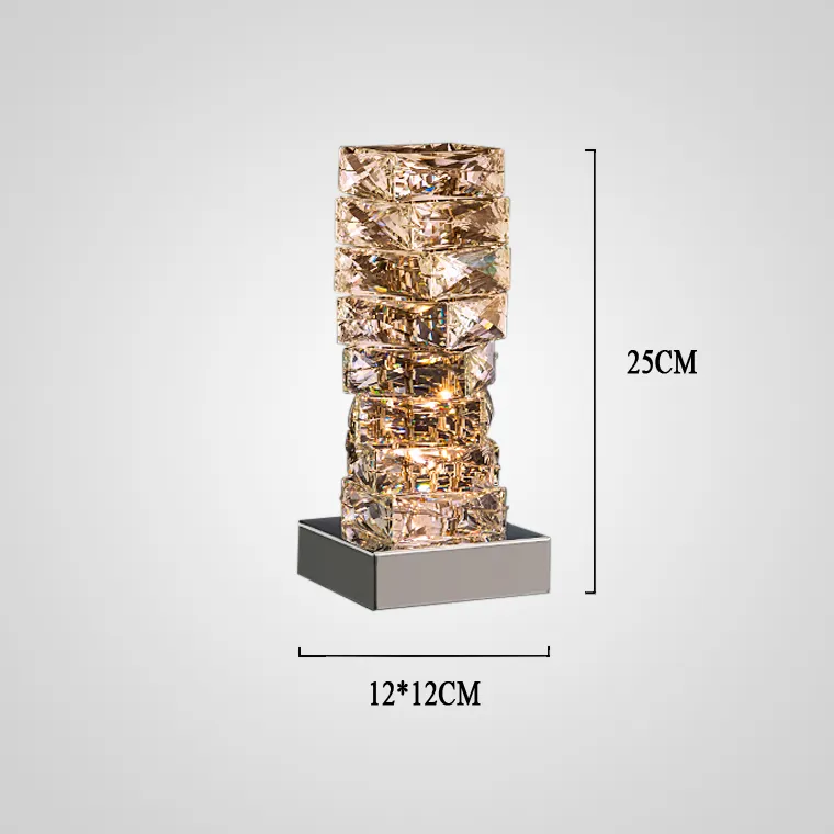 Настольная светодиодная лампа с прямоугольным плафоном из составных хрустальных слитков на хромированном основании