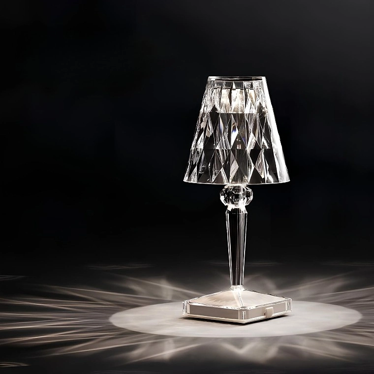 Светодиодная настольная лампа с многогранным конусообразным плафоном на рельефной ножке