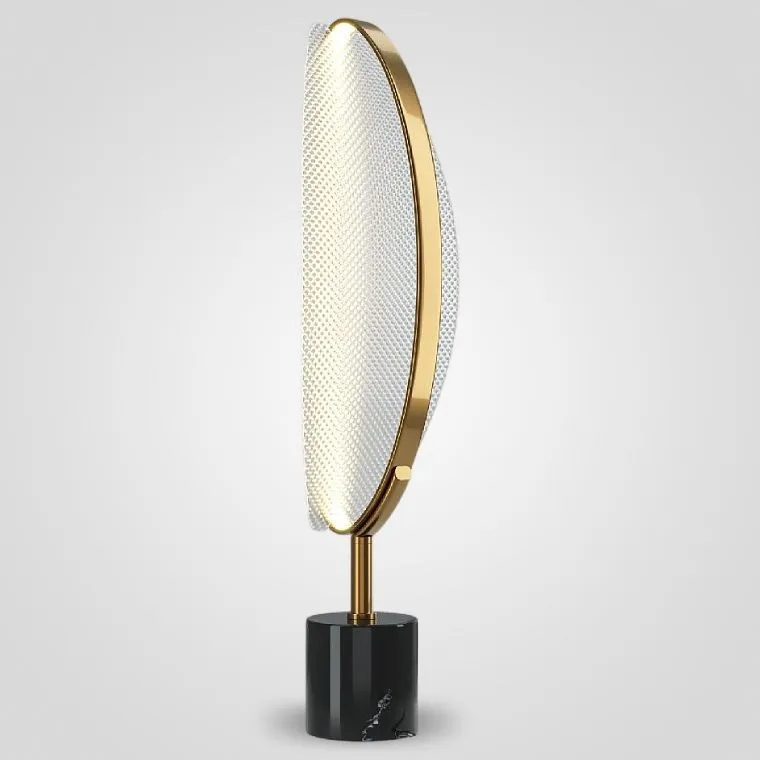 Настольная светодиодная лампа с изогнутым рельефным рассеивателем листовидной формы на мраморном основании