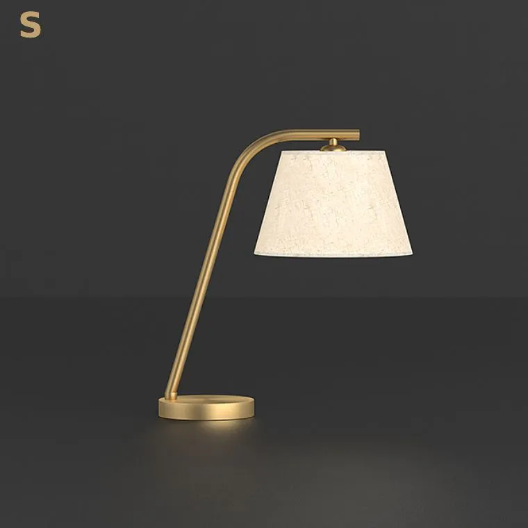 Настольная лампа в скандинавском стиле с плафоном трапецевидной формы. Настольная лампа в скандинавском стиле с плафоном трапецевидной формы – это элегантное и стильное дополнение к любому интерьеру. Ее латунный корпус придает ей изысканность и изящность, а смещенная наклонная ножка добавляет шарма и оригинальности.
