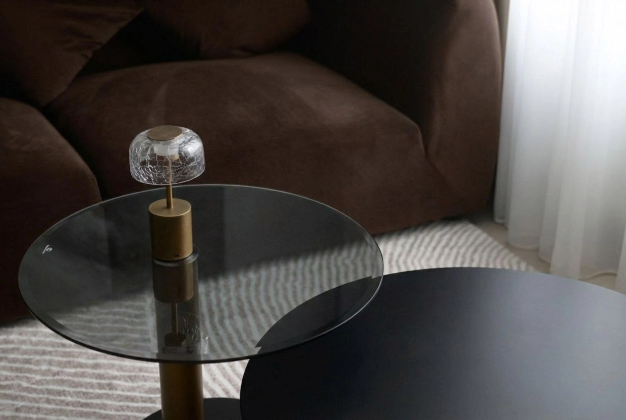 Перезаряжаемая светодиодная настольная лампа с плафоном из кракелированного стекла и сенсорным переключателем.