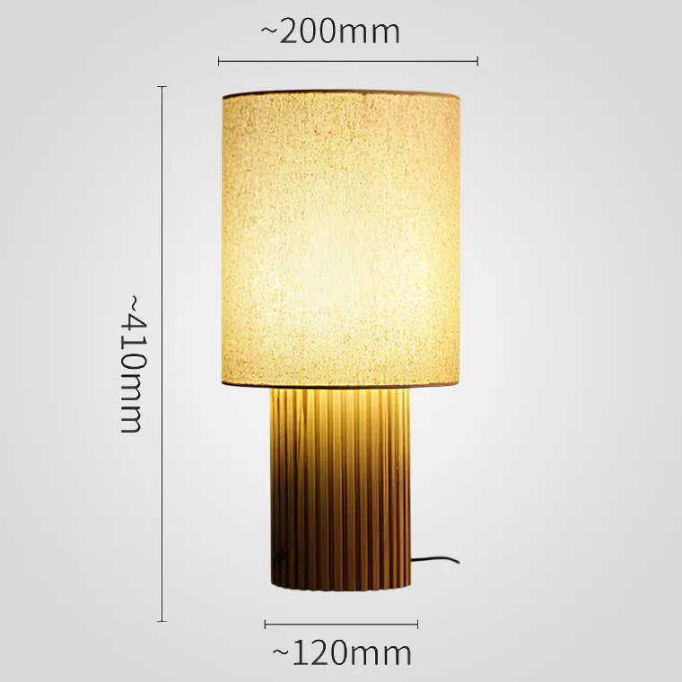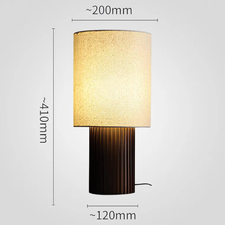 Серия настольных ламп с рельефным корпусом из высококачественной древесины разных оттенков и текстильным плафоном цилиндрической формы