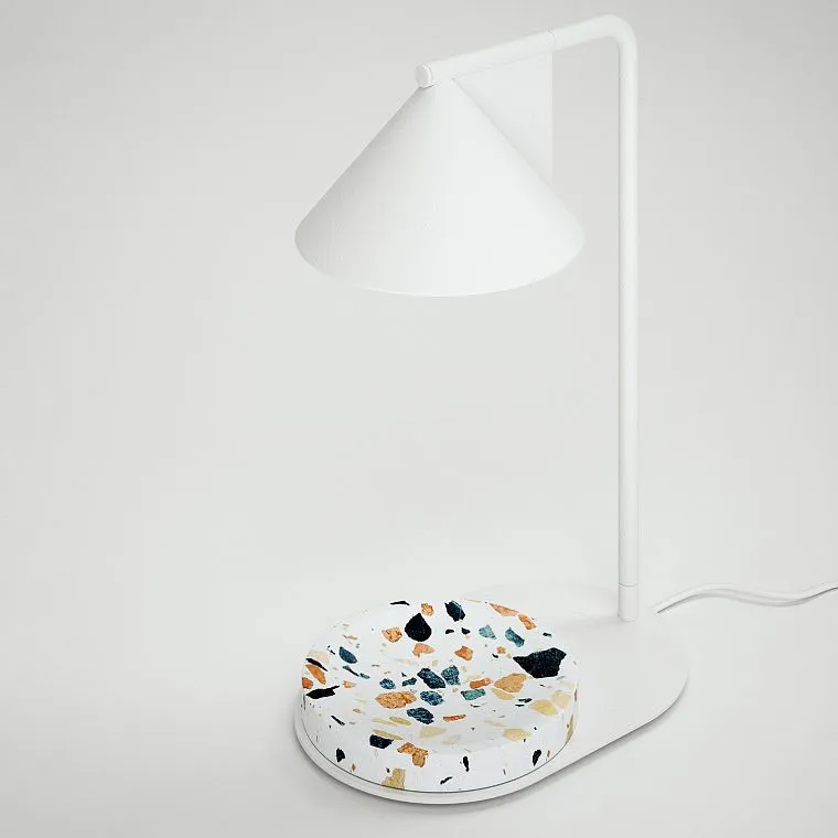 Главный свет может быть не единственным источником в комнате, его можно дополнить другими светильниками. Настольная лампа GESSI TAB в минималистичном стиле станет не только украшением интерьера, но и универсальным вариантом. Ее можно поставить на прикроватный столик, на консоль рядом с диваном или тумбу. Она дает мягкий, рассеянный свет, тем самым дополняя основной источник. На каменную тарелочку можно класть мелочь или украшения.