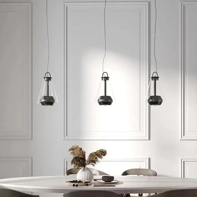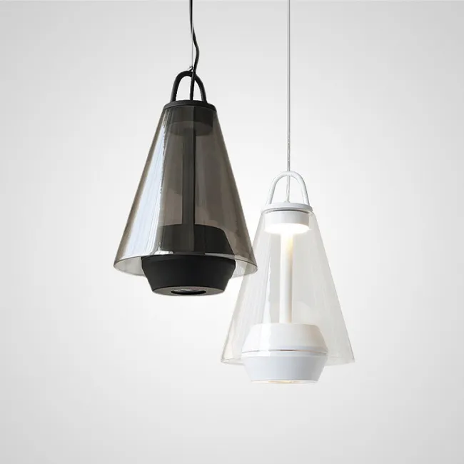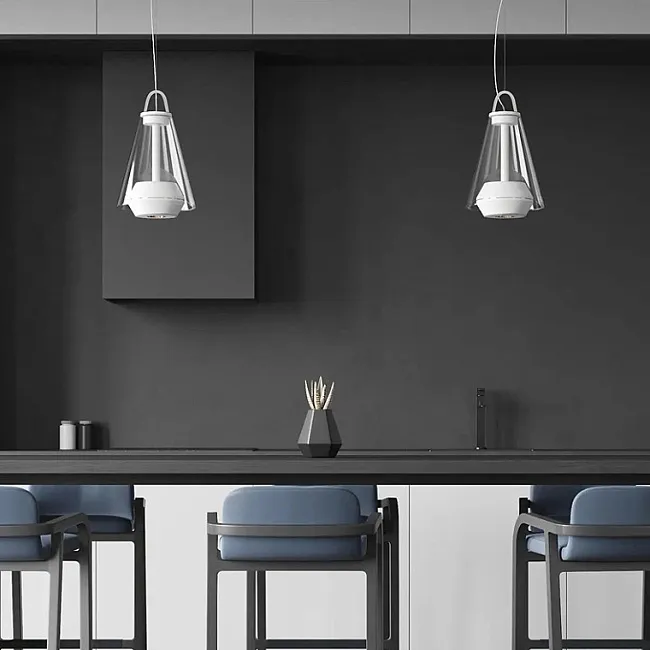 Серия настольных светильников c точечными источниками в стеклянном корпусе в форме конуса