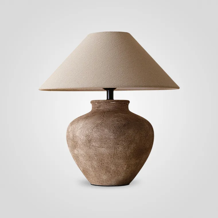 Настольный светильник с керамическим основанием с матовой текстурой коричневого оттенка и конусным абажуром