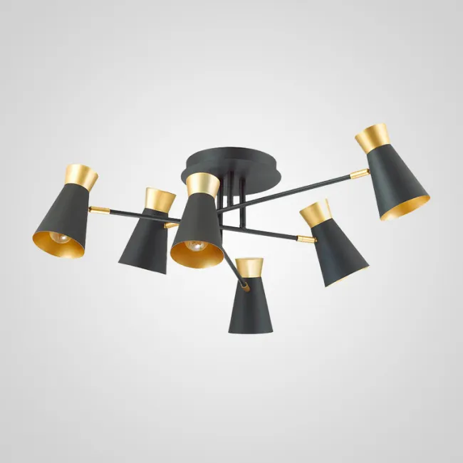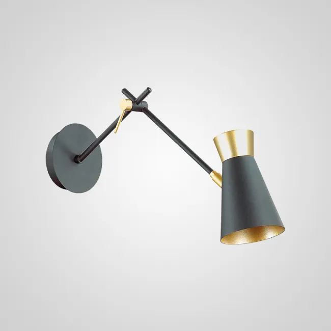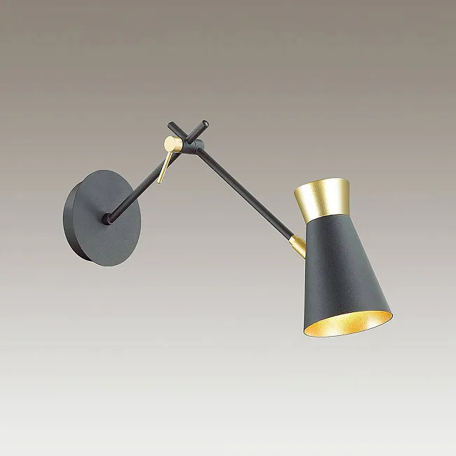 KERTY TAB имеет поворотный механизм, который позволяет направлять свет и создавать нужную атмосферу в комнате. Ее конический плафон и черный цвет каркаса добавляют элегантности и стиля, а золотистые элементы придают шик и блеск.